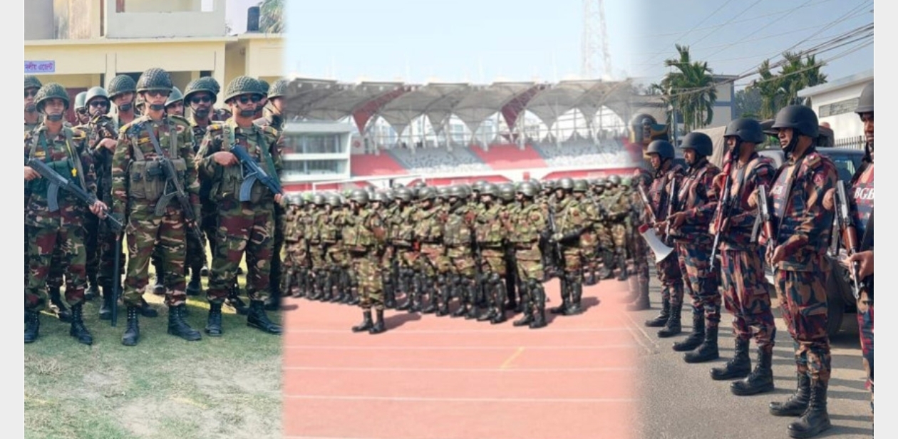ত্রয়োদশ জাতীয় সংসদ নির্বাচন ও গণভোট অবাধ, সুষ্ঠু, নিরপেক্ষ ও শান্তিপূর্ণভাবে আয়োজনের লক্ষ্যে আজ থেকে মাঠে নামছে সেনাবাহিনীসহ বিভিন্ন আইনশৃঙ্খলা রক্ষাকারী বাহিনীর সদস্যরা। রোববার (৮ ফেব্রুয়ারি) থেকে মাঠ পর্যায়ে আনসার বাহিনী মোতায়েন করা হবে। দায়িত্ব পালন শুরু করেছেন ১ হাজার ৫১ জন নির্বাহী ম্যাজিস্ট্রেট।এছাড়া নির্বাচনের আগের দিন (১১ ফেব্রুয়ারি) সকালে ১ লাখ ৫৭ হাজার পুলিশ সদস্য মোতায়েন করা হবে।