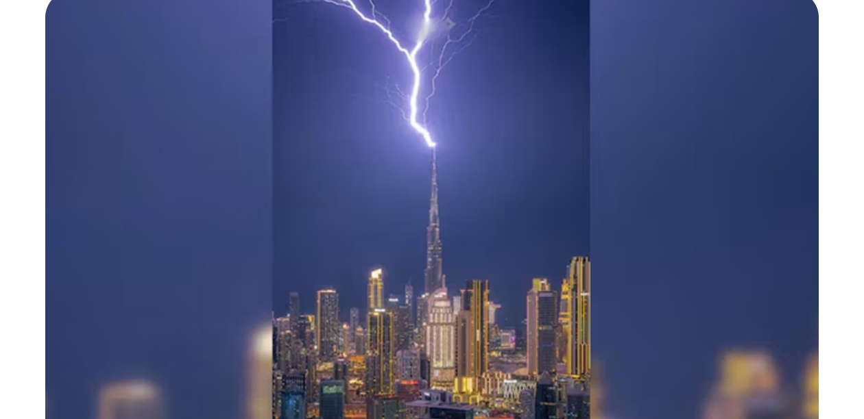 সংযুক্ত আরব আমিরাতে প্রবল বজ্রঝড়ের মধ্যে বিশ্বের সর্বোচ্চ ভবন বুর্জ খলিফার ওপর আঘাত হেনেছে শক্তিশালী বজ্রপাত। বৃহস্পতিবার (২৬ মার্চ) দিবাগত রাতে এই ঘটনা ঘটে। ওই সময় আবুধাবি ও শারজাহসহ দেশটির বিভিন্ন অঞ্চলে বিরল ও তীব্র আবহাওয়া বিরাজ করছিল।প্রায় ২২৭২ ফুট উচ্চতার আকাশচুম্বী ভবনটিতে আঘাত হানার সময় দুবাইয়ের আকাশে ঘন মেঘ, বৃষ্টি ও বজ্রপাত চলছিল। সামাজিক যোগাযোগমাধ্যমে ছড়িয়ে পড়া ভিডিও ও ছবিতে ধরা পড়েছে এমন দৃশ্য। ভিডিওতে দেখা যায়, ভবনের চূড়ায় বজ্রপাত আঘাত করছে।
